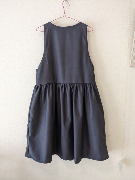 Vネックワンピース。産後も着れるように授乳しやすいワンピースを作りたくて。下記のサイトを参考に、スカート部分はギャザー切り替えに改造してみました。ChatGPTにお願いして予め作ったイメージ写真は理想の形だったけど、実際の完成形とはちょっと違った… 反省点:もっと切り替え位置を上にして、スカート丈も長めが良かったな。そして今お腹が大きい状態で着てみるとパツパツで肩部分を脱ぐことができず、ほんとに授乳できるのかは怪しい…。 参考サイト: https://nukumore.jp/articles/1530?1530&page=1#outline4 https://yansewing.com/2023/09/pocket.html/