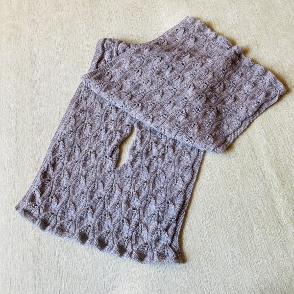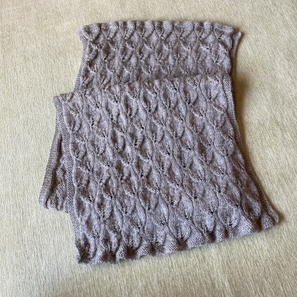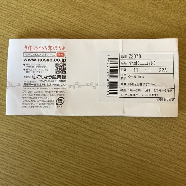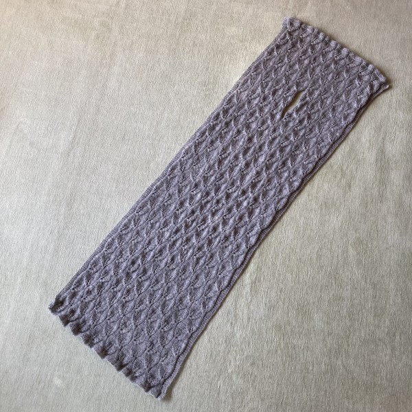 10個パックで買った毛糸でセーターを編み、残りが2個半。長いマフラーは編めそうもないので、穴に差し込むタイプで。
