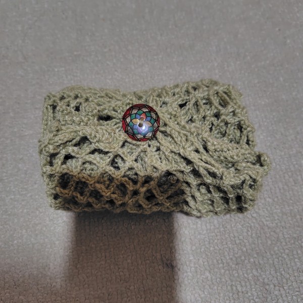 | …何かカーペットと同化しとる 会社の同僚に色々お世話になってしまったので、鶴の恩返し(?)的な贈り物を ハマナカさんのあむゆ〜ず、無料編み図からパイナップル編みの「しぼって包めるコンパクトマイバッグ」を参考に編みました ちなみに本来ならば、収納するためのポケットが付くはずなのですが、何かモッサリしてしまったので省略 パイナップル編みでスカスカなので折りたたんで丸めてボタン留め仕様にしました ついでに紐も本来ならばスレッドコードなのですが、何かどうも上手く編めないのでかぎ針2本使いで仕上げましたよ はっきり言って容量はあまりありません… ↑恩返しにもならん コンビニ行く時にでも使ってもらおう… |