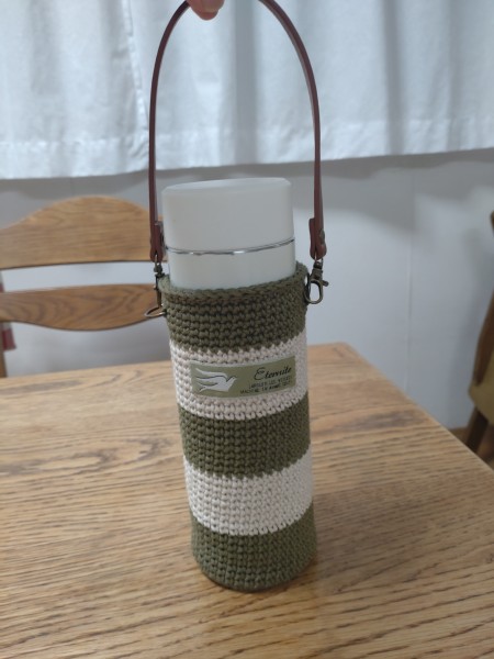| 手持ちの糸消費でペットボトルケースとスマホショルダーをお揃いで編みました。 これでカーキーとキナリの糸を使い切りました♫ タグも同じのが2枚有ったので丁度良かった♡ ペットボトルだけでなく、500mlのステンレスマグボトルも入ります。 持ち手は取り外せるのでカバンの、持ち手に引っ掛けたり、ウォーキングの時に長いスマホストラップとかと交換したら肩からも下げていいかも(*^^*) |