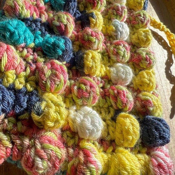 立体的な玉編みでぽこぽこと模様編みをしました。