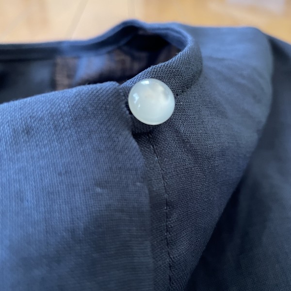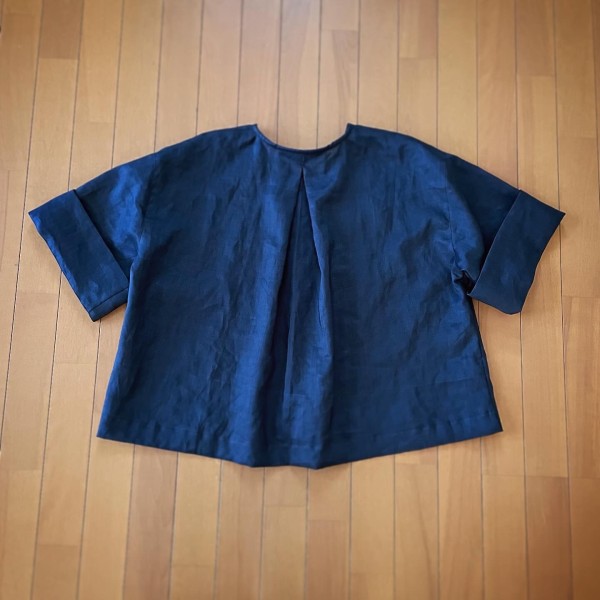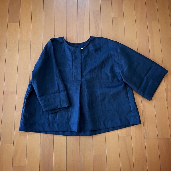 今回はネイビーのリネンで作りました。ややハリがあって袖口も広いので、出ている腕が華奢に見える効果もありそう。
