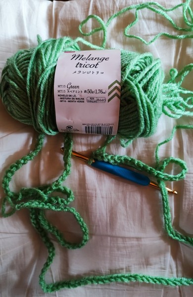 4個目の毛糸です。まだ15cm位。10個購入したのですが、足りなくなりそうな気がしてきました。玉編みは糸の減りが早いのでしょうか。買い足ししました。