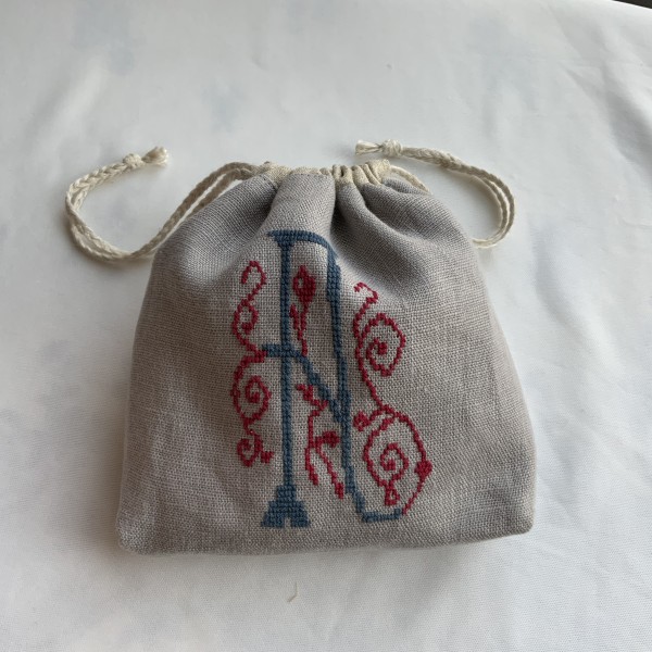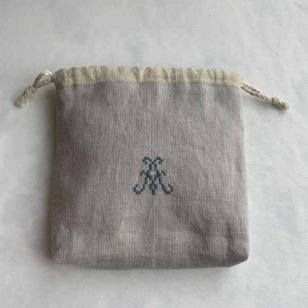 クロスステッチ用ではない生地だったので図案がなが〜く仕上がってしまったのですが、ミニ巾着ポーチに仕立てました。