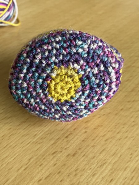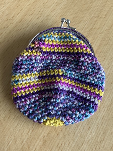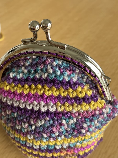セリアのミルフィムソックヤーンで、がま口を作りました