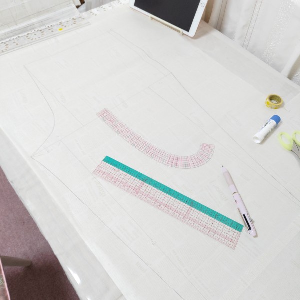 以前作ったワイドパンツの型紙を修正する作業からスタート!