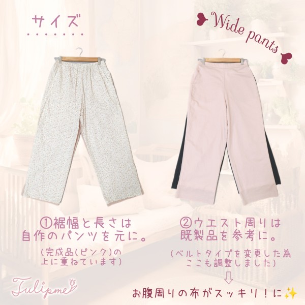 総ゴムの方が履きやすさ、作りやすさ共に好きだったのですが、服を作るようになってシルエットへの意識も変わり、着た時のキレイさも気になるようになってきた今日この頃です♪(. ❛ ᴗ ❛.)