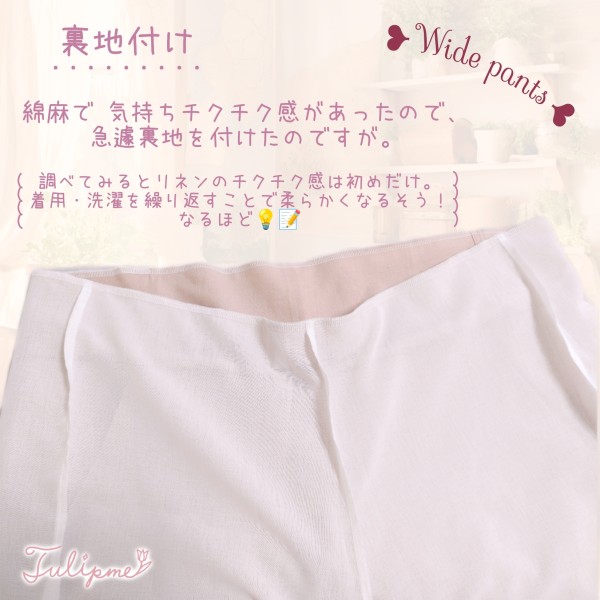 前回のワイドパンツ作りと違う工程のみの記録です。