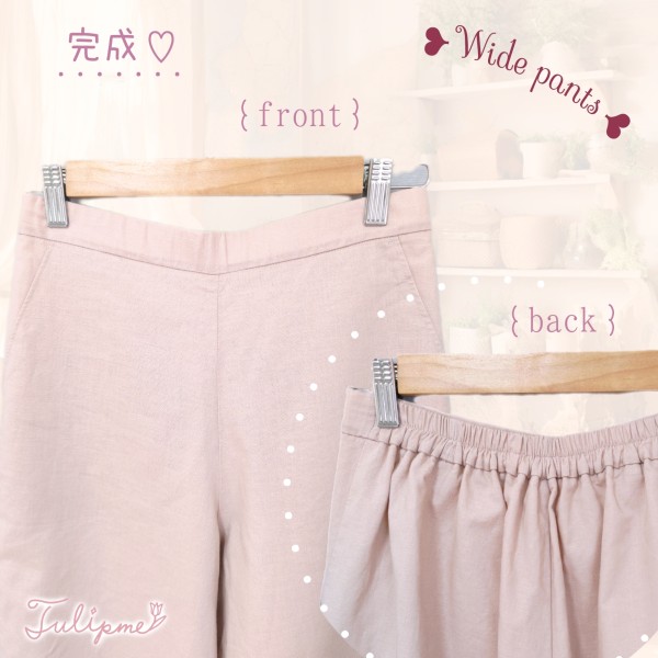 | 暑い時期に向けて、 サラッと履けるワイドパンツ作り! 今回は総ゴムではなく、後ろのみゴムを入れて 前側はスッキリ仕上がるタイプに挑戦です! 生地はこれから調達予定♪ どんなのがいいかな(◍•ᴗ•◍) |