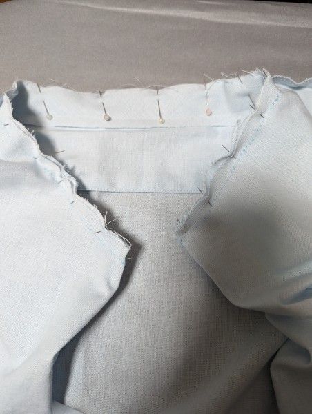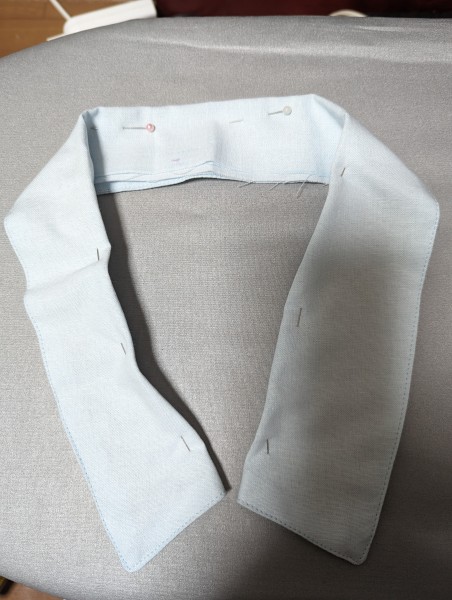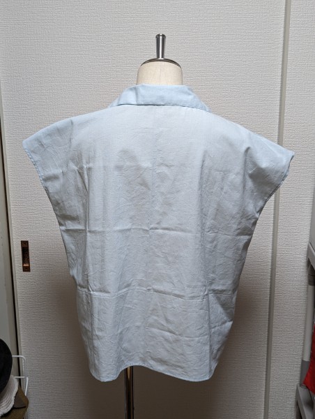 かたやまゆうこさんの「ブラウスを縫おう」のフレンチスリーブのブラウスをぬいましたが、見返しを間違えてボタンの付け方を変更しました。