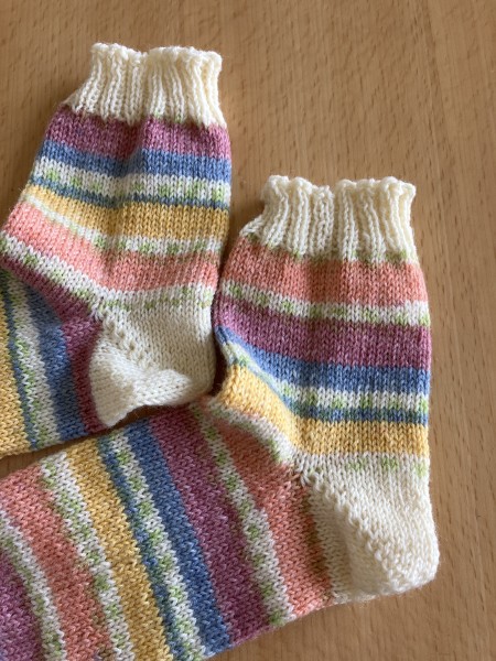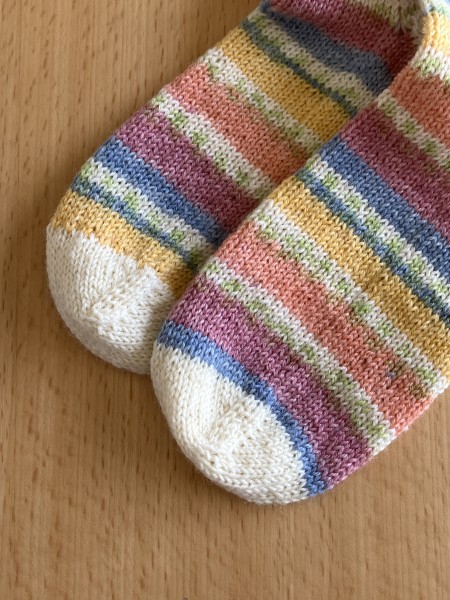 opalの靴下 つま先、かかと、履き口は、単色オフホワイトを使いました 23センチ用
