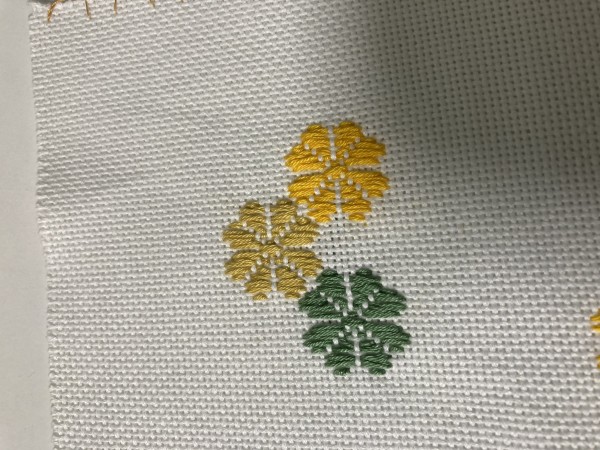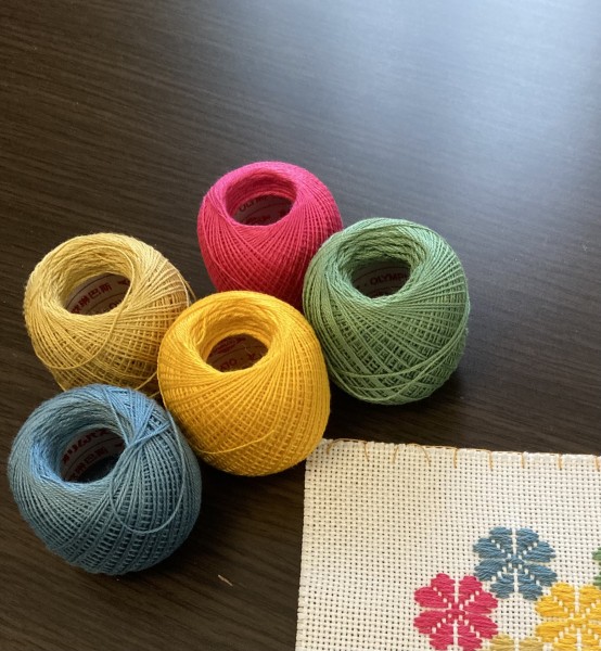 糸はこの五色、花の配置は試行錯誤しましたがとりあえずこの配置で進めています。