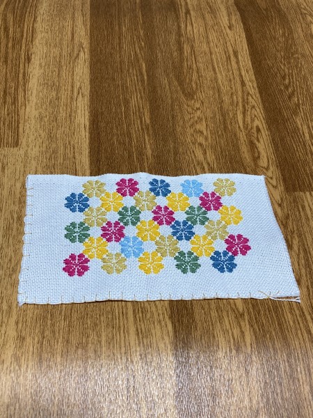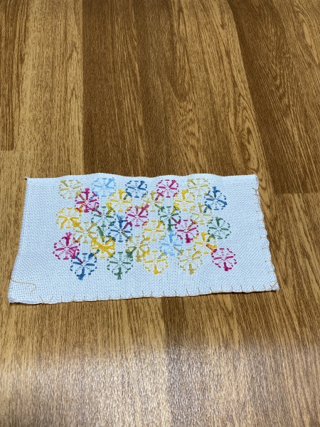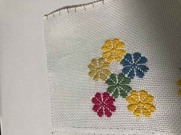 こぎん刺しありきで行き当たりばったりの制作だったため、ちょっと歪みがあり、ミシン縫いは無理でした…。
