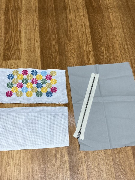 手持ちのグレーのシーチング、ファスナーを合わせてポーチにしました!