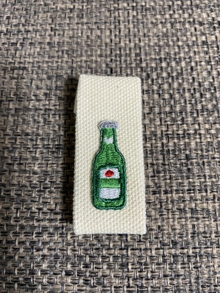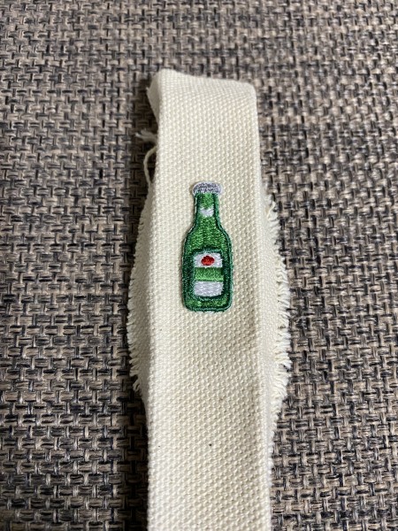 息子が台湾で買ってきてくれたワッペンを使って、自転車のキーホルダーを作りました。帆布カバンの、バネホックをつけているタグ部分を真似ました。