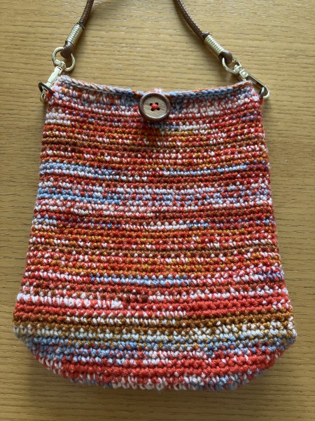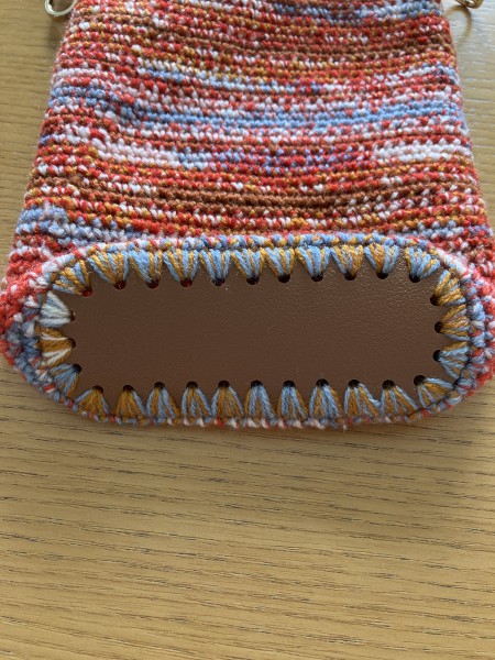 お散歩用ポシェット DAISOのポストカードを2本取りにして編みました 底は、DAISOのバッグ底(ミニサイズ)を使用