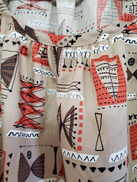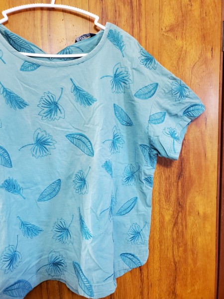 ターコイズの既製服を型紙にして、袖付けなしのフレンチスリーブにしました。