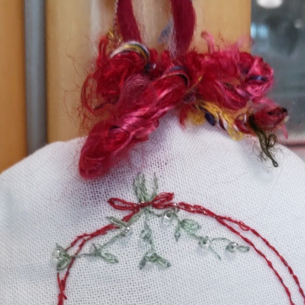 ふわふわの綿が入ったオーナメントです。裏にもワンポイントを入れました。糸は主にDMCです。