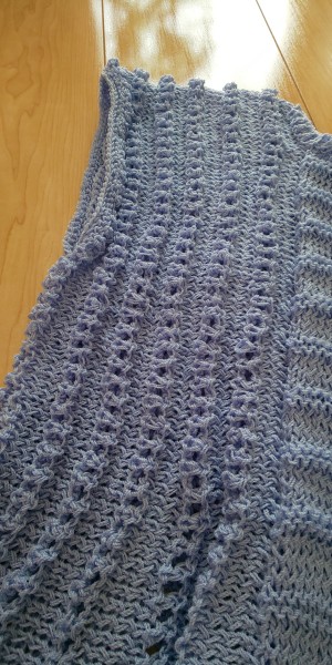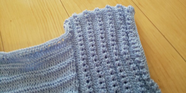 二種の異なる編み地がうまく組み合わせられているデザインです。