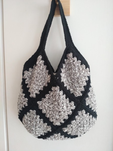 | モチーフを13枚編み グラニーバッグにしました。 グラニースクエアの模様でも配色によっては雰囲気がガラッと違います。 ちょっと秋っぽくシックな感じにしてみました。 内布&ポケットも付けています。 細めの糸だったので、最初に2本取りでモチーフを編んだんだけど、なんか違うなぁと思って一本取りにしました。 その際の2本取りで編んだモチーフ2枚をお揃いで小さなイヤホン入れにしました(*^^*) |