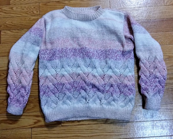 DAISOのミックスケークが可愛くて衝動買いしてしまったので段染めを生かしてシンプルなセーターを作成。