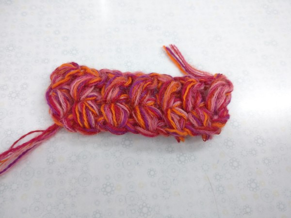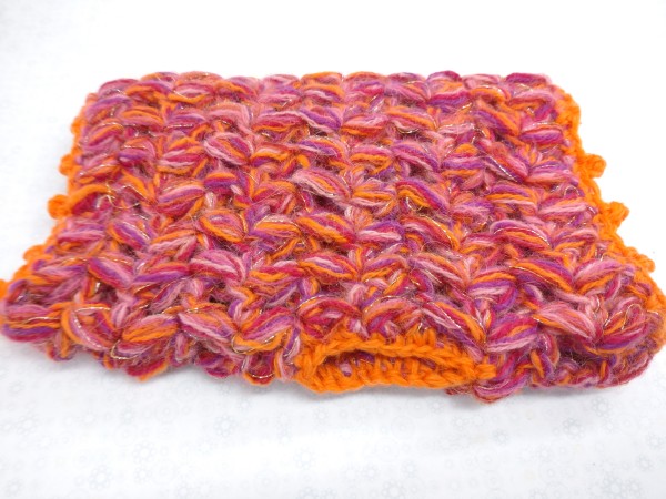 ビビッドな色とラメ糸を数本合わせて、色鮮やかにハンドウォーマーを作ってみました♪