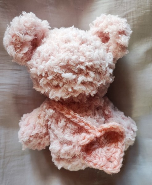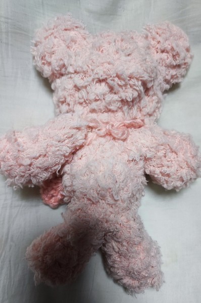 在庫の糸のピンクと白を2本取りで今までとは色々編み方を変えながら編んでみました。