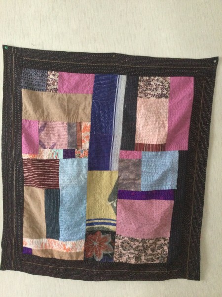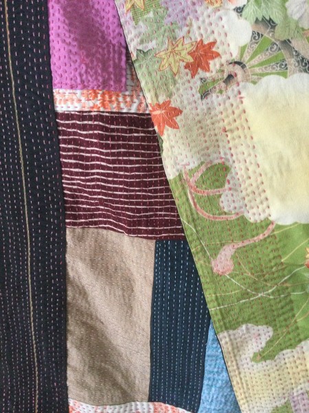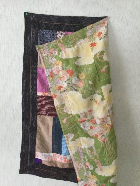 着物の端切れをパッチワークしてラリーキルト風に仕上げる