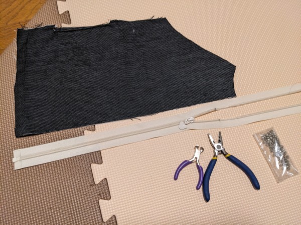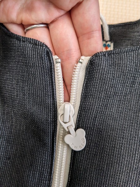 初めてオープンファスナーを使いました。長さに合わせて、歯をむしり取って止め金具を付けて、なかなかの本格仕様に自分でも満足!パーツが多くて型紙写すのと裁断が大変でしたが、あとは本のレシピ通りに問題なく完成!