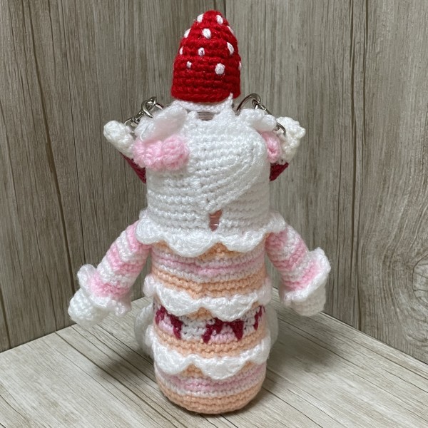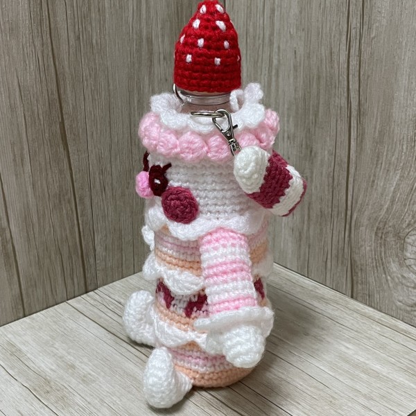 ケーキのペットボトルカバーになります。キャップの部分を苺で隠しています。