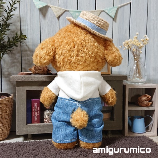 最初はマフラーを巻いただけでしたが、お洋服と帽子も作ってみました。