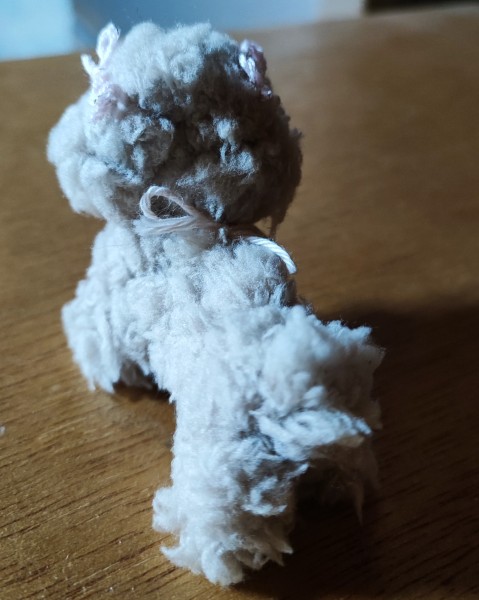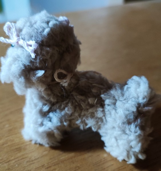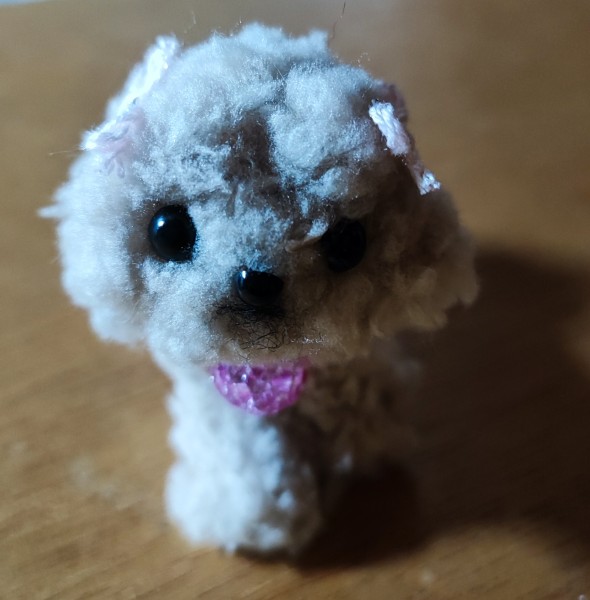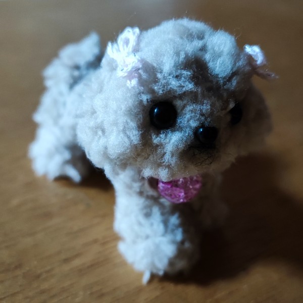 犬が大好きな母へ。カーネーションに添えたくて作りました。ふわふわでもこもこしていて癒されます。