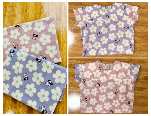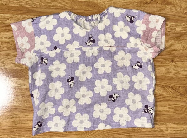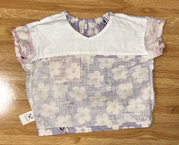 | 2歳の娘のトップスを作りました。袖付けが一番難しかったです。前ヨークは裏地付き。ダブルガーゼにしました。 身丈が短く、手を挙げるとお腹が見えちゃいます… |