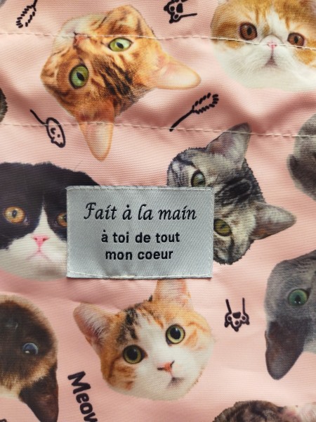 | DAISOの布で、巾着バッグ作りました。裏地には、綿ローンを使用。ネットで購入したのですが、薄すぎて使い道がなくとって置いた生地です。色合いもピッタリで、使う事出来てよかったです。以前友達にバッグを作った時に、メルカリで購入したタグを付けてみました。タグ縫うの難しいです…。両面テープで固定してから縫ってるのですが、ちょっとズレてしまうんですよね。 | |