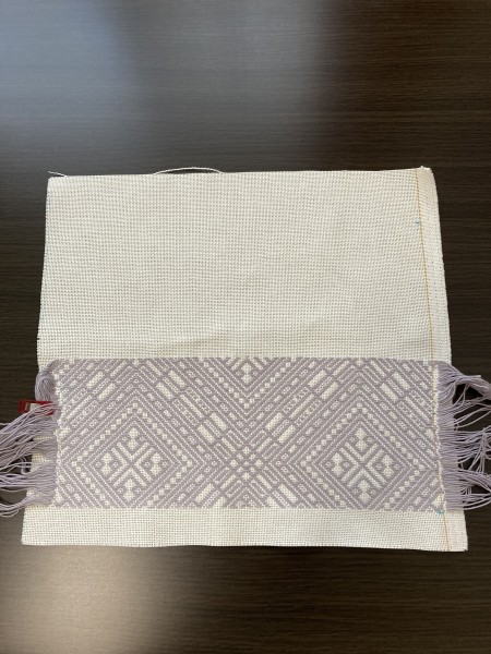| こぎん刺しで普段使いのバッグを作っています。かなり時間はかかりそうです。 | |