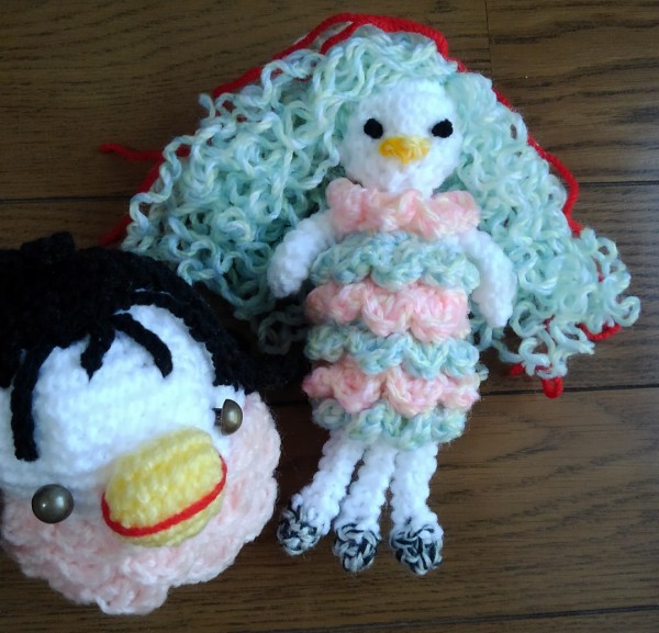 髪の毛は、ソバージュ風に(ほどいた糸を使っただけなんですが)