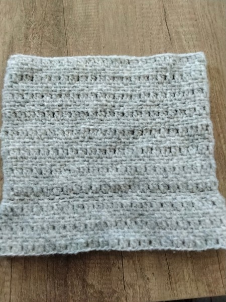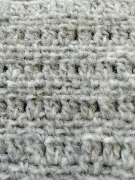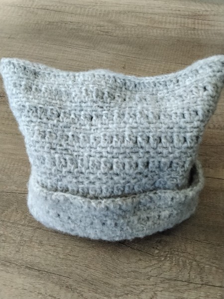 糸のあるだけ編んだので少し長くなり、折ってかぶる感じになりました