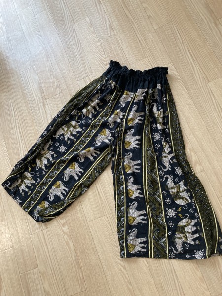 | 古くなったラップパンツを解体して、ウエストに黒い布を足してワイドパンツに作り替えました。 型紙はヌノコトファブリックさんのリラックスワイドパンツです。股下を5センチほど長くしました。 ウエストに布を継ぎ足すのが難しかったですが、折り伏せ縫いでやってみました。 ラップパンツの布を生かして履きやすい形にできたので良かったです。 |