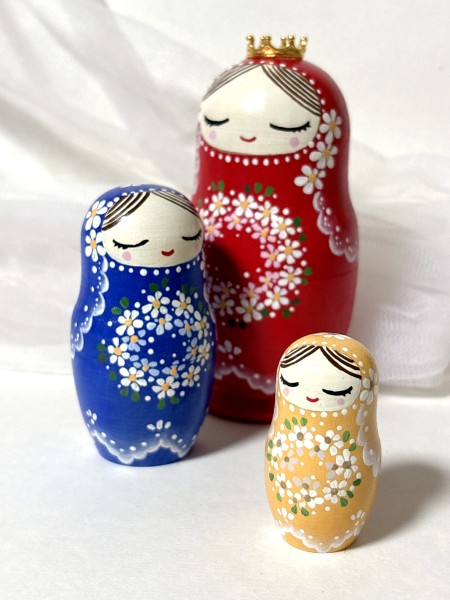 ロシアから輸入した白木に絵付けをしています