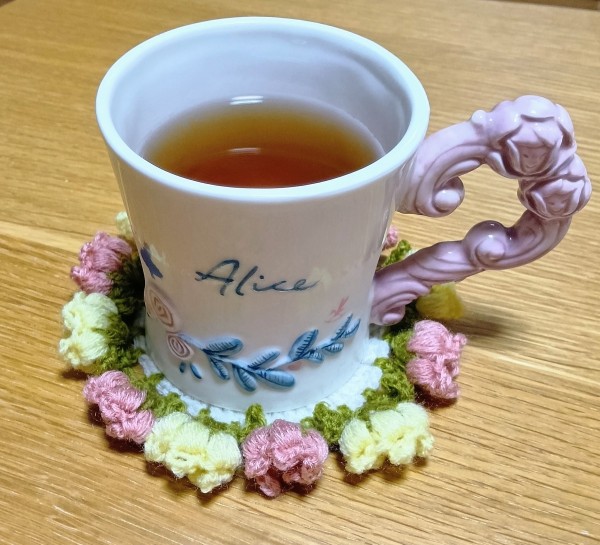 ハマナカさんのレシピより『お花のブーケコースター』です。