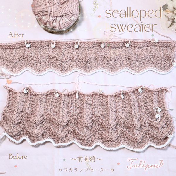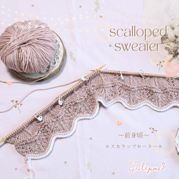 | スカラップの模様が愛らしいセーターに惹かれ、編み始めました♪ | |