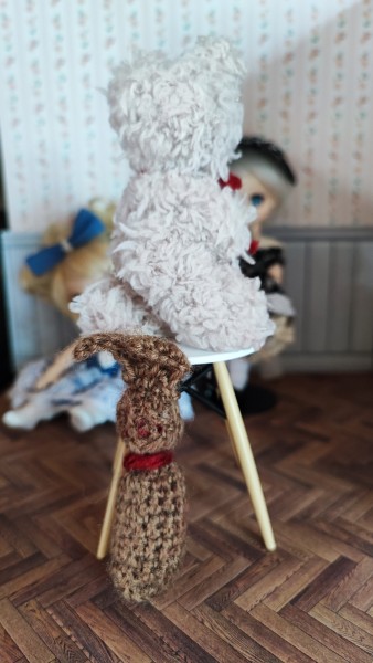 あみぐるみのうさぎとモールのくま。