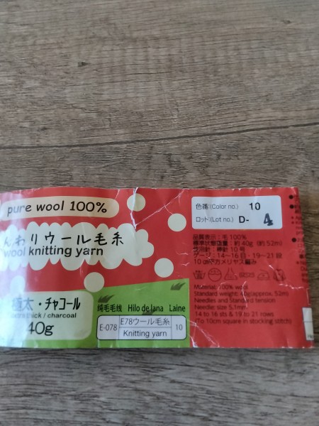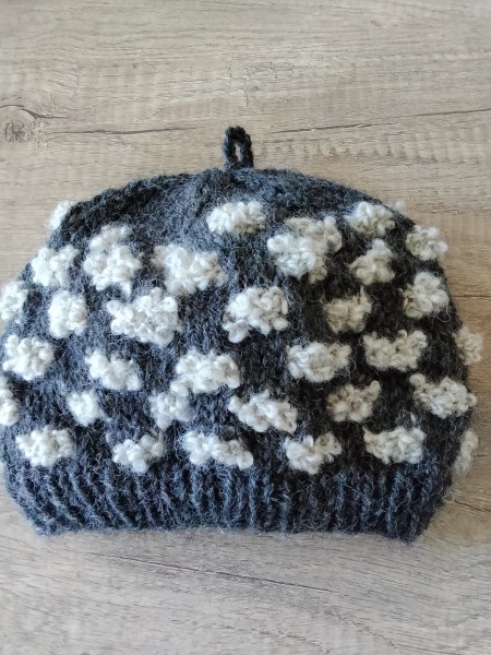 ひつじ糸の残り糸でみずたまに。グレー糸足りず、少し小さく仕上がる。