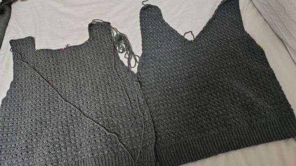 | これからの季節にと、大好きなアメリーを使ってVネックベストを編みました。 Youtube動画を参考に、違う糸を使用するのでサイズから再計算するのが中々骨が折れましたが、なんとか着れるサイズに仕上がって良かったです笑 また、はじめてウェアを完成させたので、達成感もひとしおですね。 |
