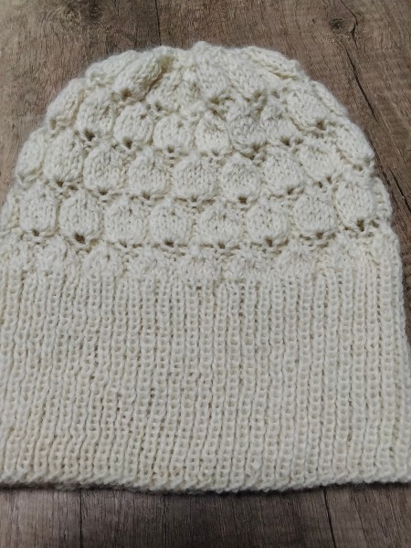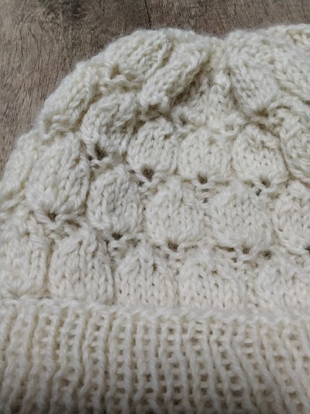 ちょっと糸が太いのか、1段柄が少なく出来上がる 折り返しのかぶり口は厚みが出てあまり好きではないなあ