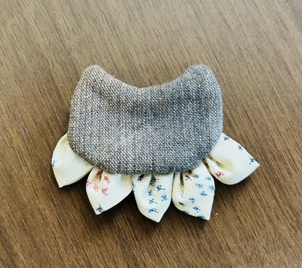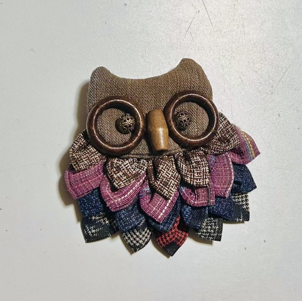 フクロウのブローチです。出来るだけ可愛らしいお顔になるように目の位置に気をつけて作っています。