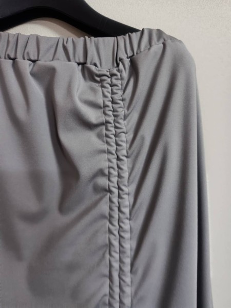 紐をしぼることでシルエットが変化します。紐の長さはスカート丈ほど長いので、紐作りも勉強になりました。