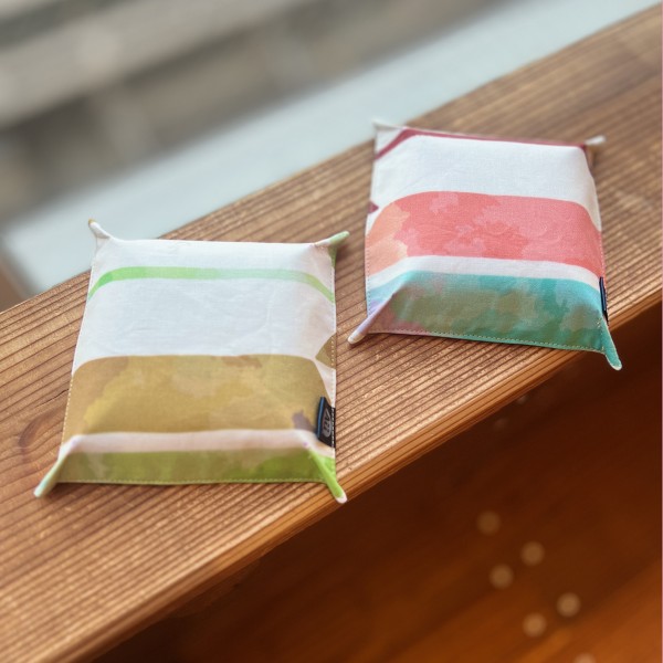 日本の吉祥文様『矢絣』を、水彩タッチでデザインした生地で、ファブリックトレイを作りました。