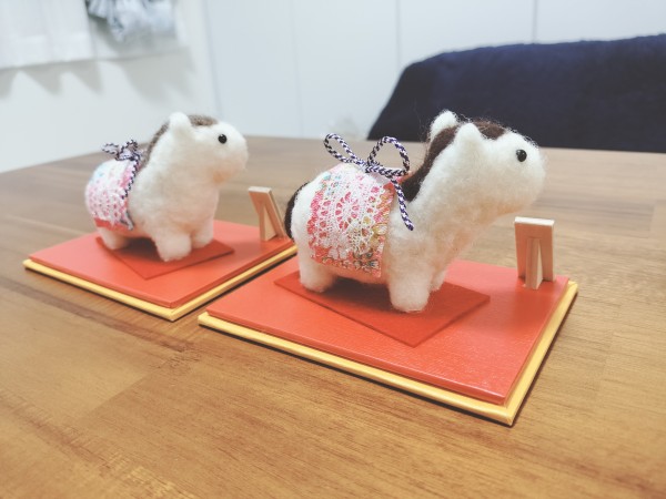 2026年の干支、午の干支飾りです。毎年干支飾りを作って今年で12年回りました。羊毛フェルトを始めて12年も経ってました。最初に作った未年の飾りを見ると感慨深いです。