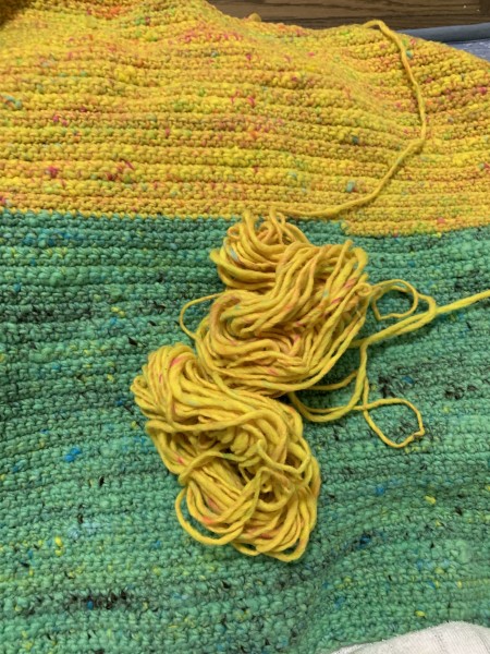 糸使用量 緑のミントが三玉、レモンが二玉